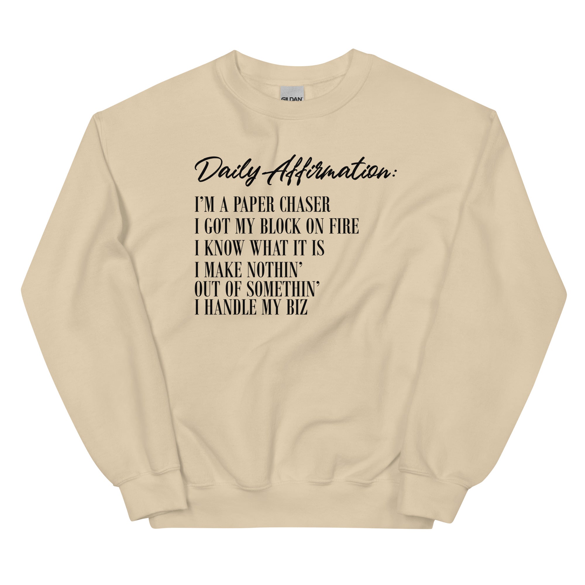 Message: Daily Affirmation: I'm A Paper Chaser, I Got My Block On FIre, I Know What It Is, I Make Nothin', Out Of Somethin', I Handle My Biz