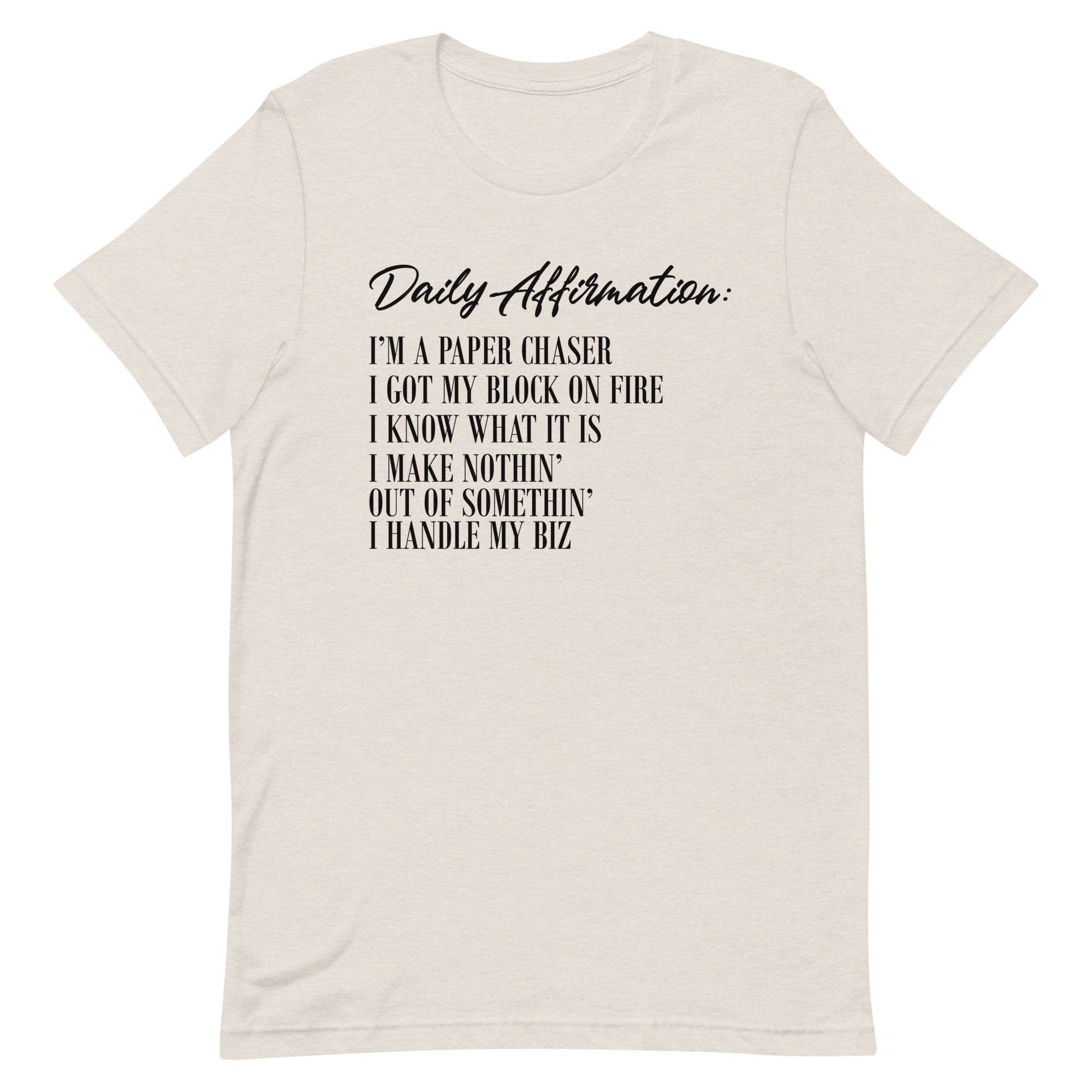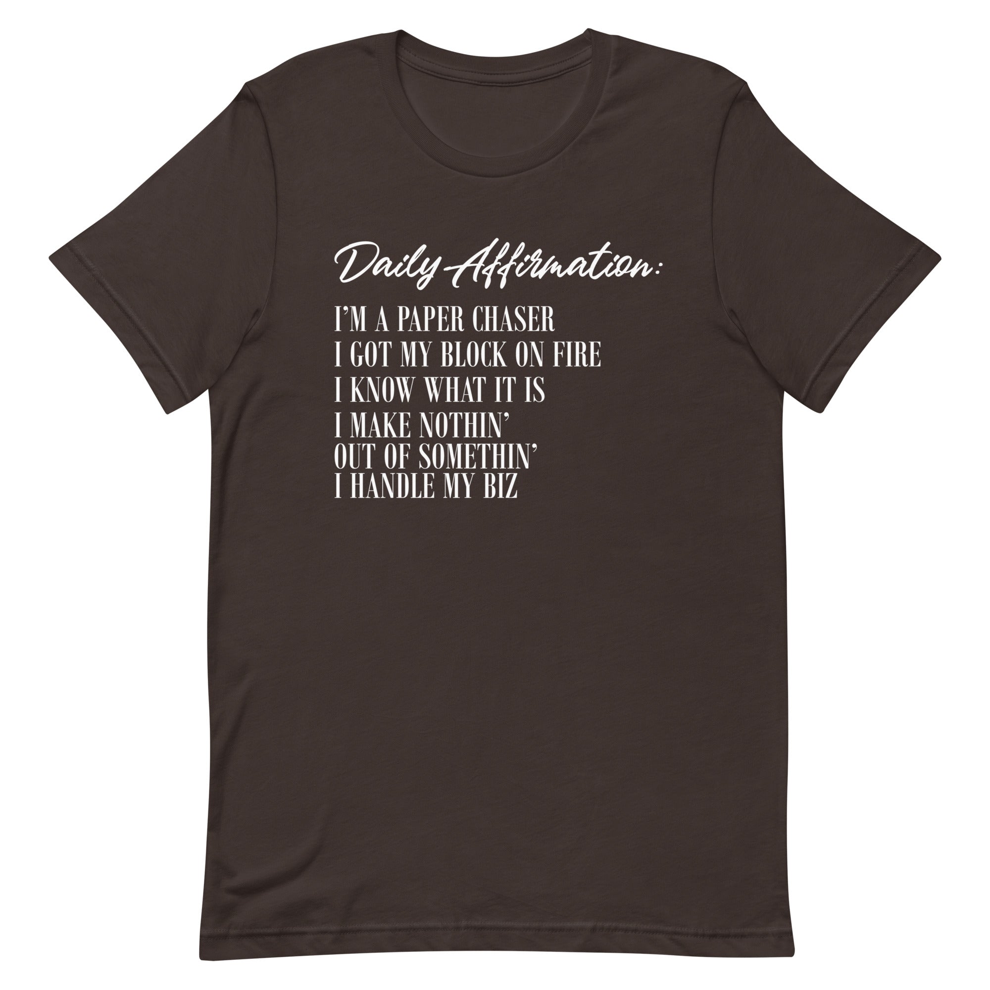 Message: Daily Affirmation: I'm A Paper Chaser, I Got My Block On FIre, I Know What It Is, I Make Nothin', Out Of Somethin', I Handle My Biz
