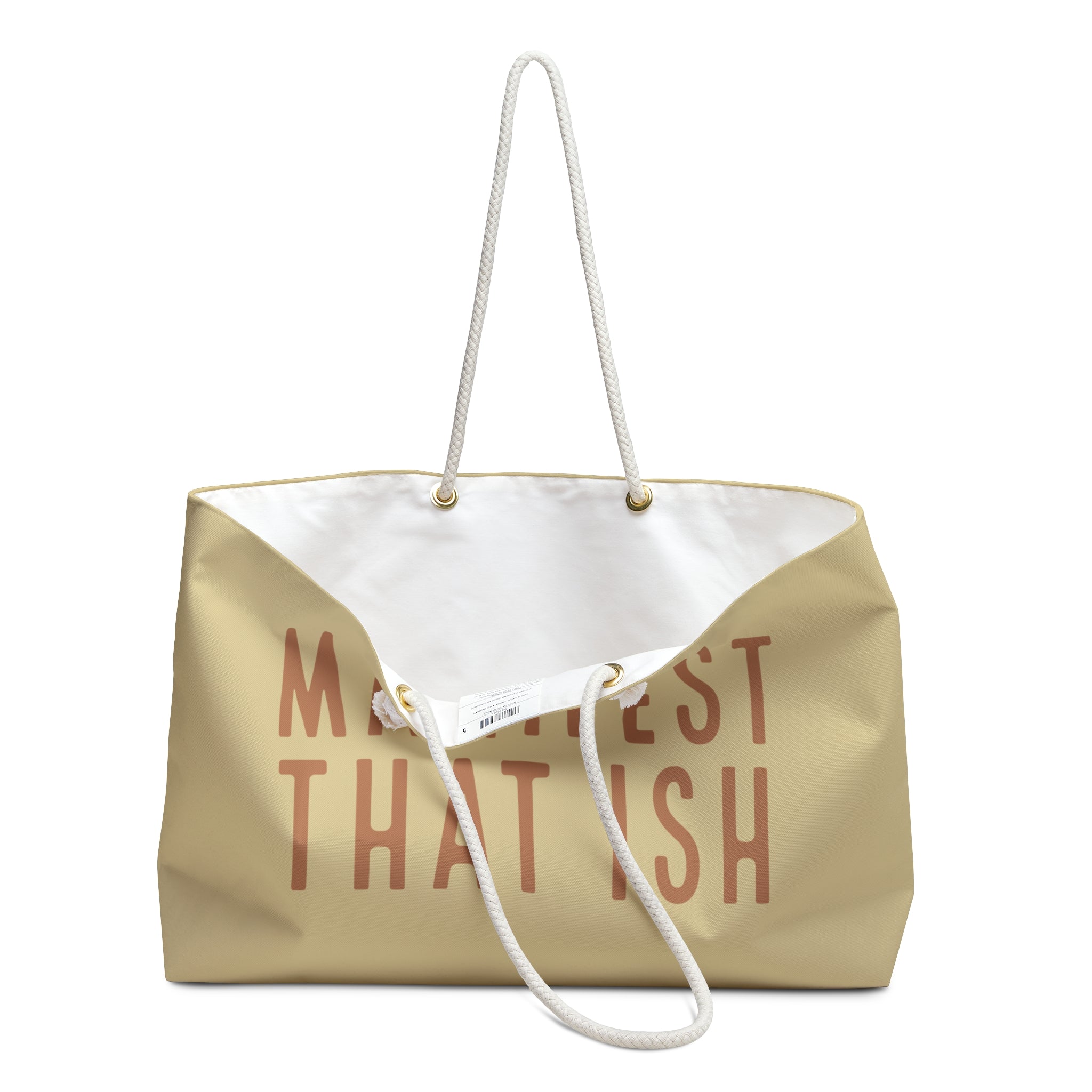 This bag is big and will hold everything. A great option for day trips when you need to carry a lot, or for packing your things for a weekend trip. The durable bag is open at top (no zip or buttons) and wide at the bottom to allow for maximum items inside. It has plenty of space for whatever you need on hand, and then some! Thick rope handles with a 12" drop fit over the shoulder or allow for carrying in your hand. Make a statement with this vibrant print, cream-colored rope handles and gold grommets.