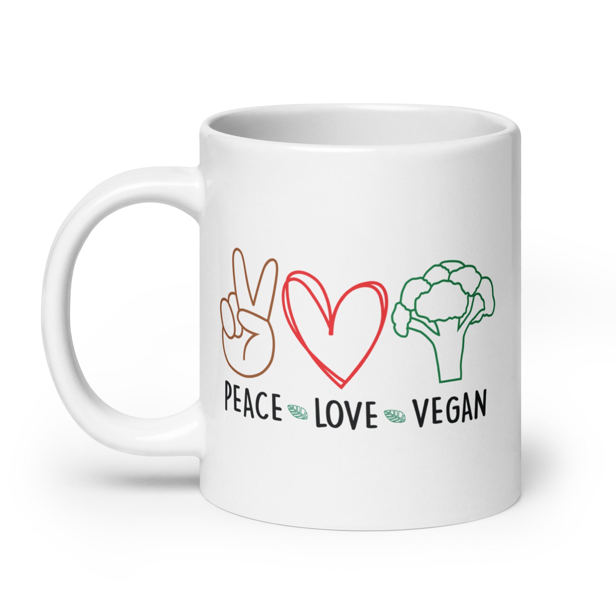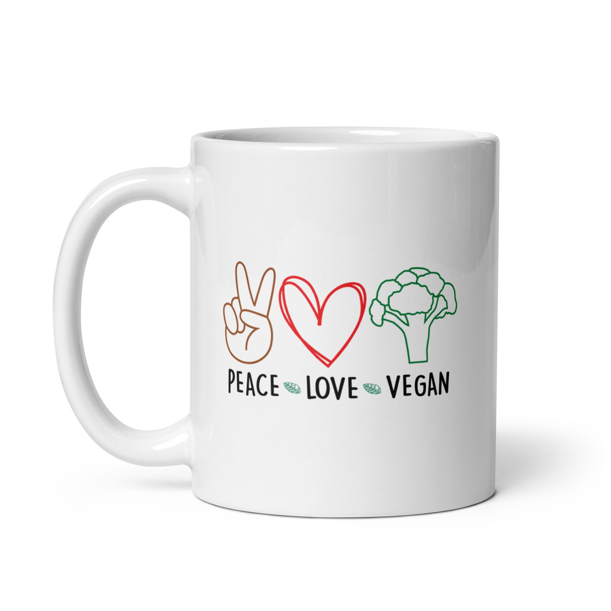 Peace Love Vegan White Glossy Mug