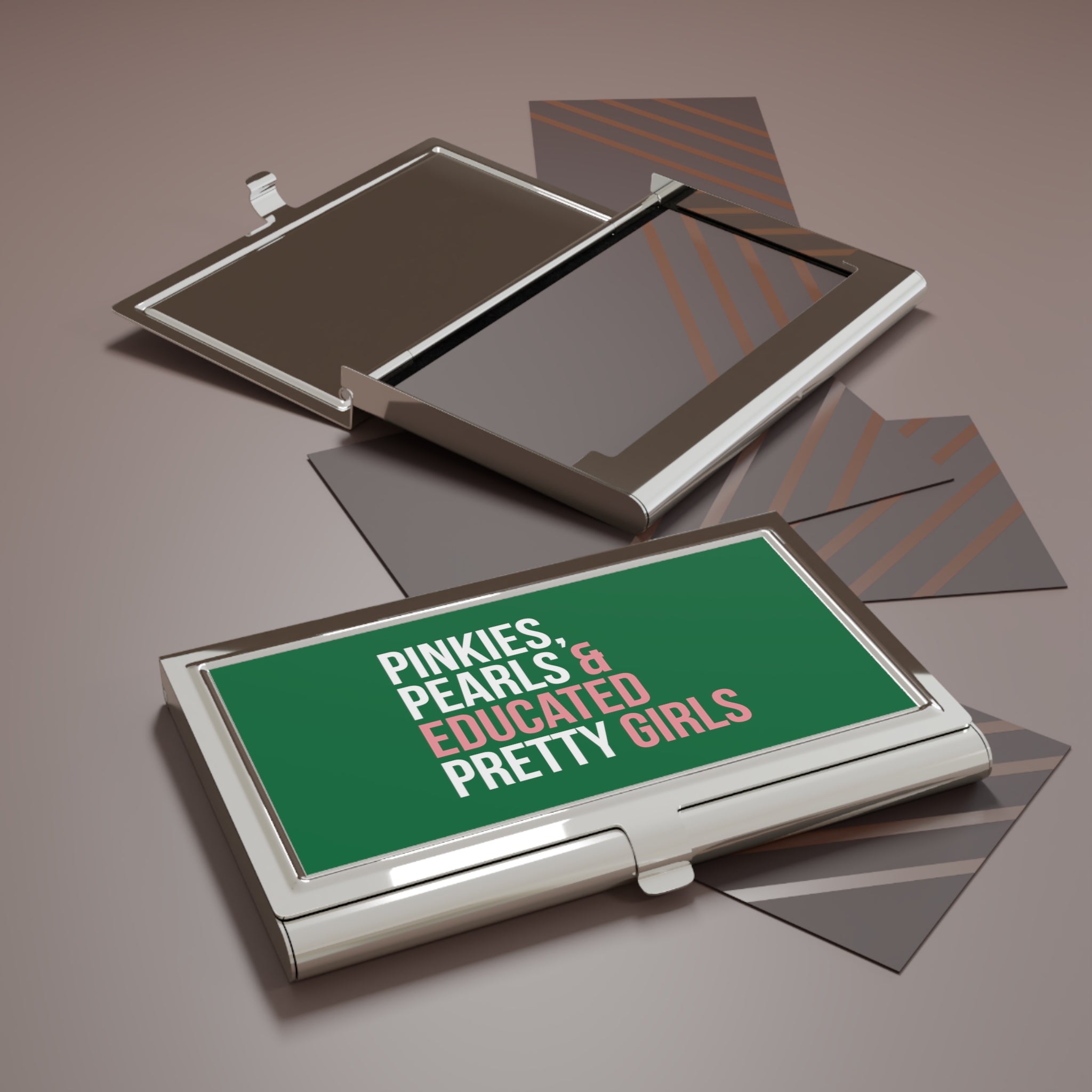 This custom business card holder is here to take on your personality and add character to your advertising. Comes complete with a sleek polished metal surface, a velvet-like interior storage base, and a capacity to store up to 20x 3.5" by 2.0"cards.