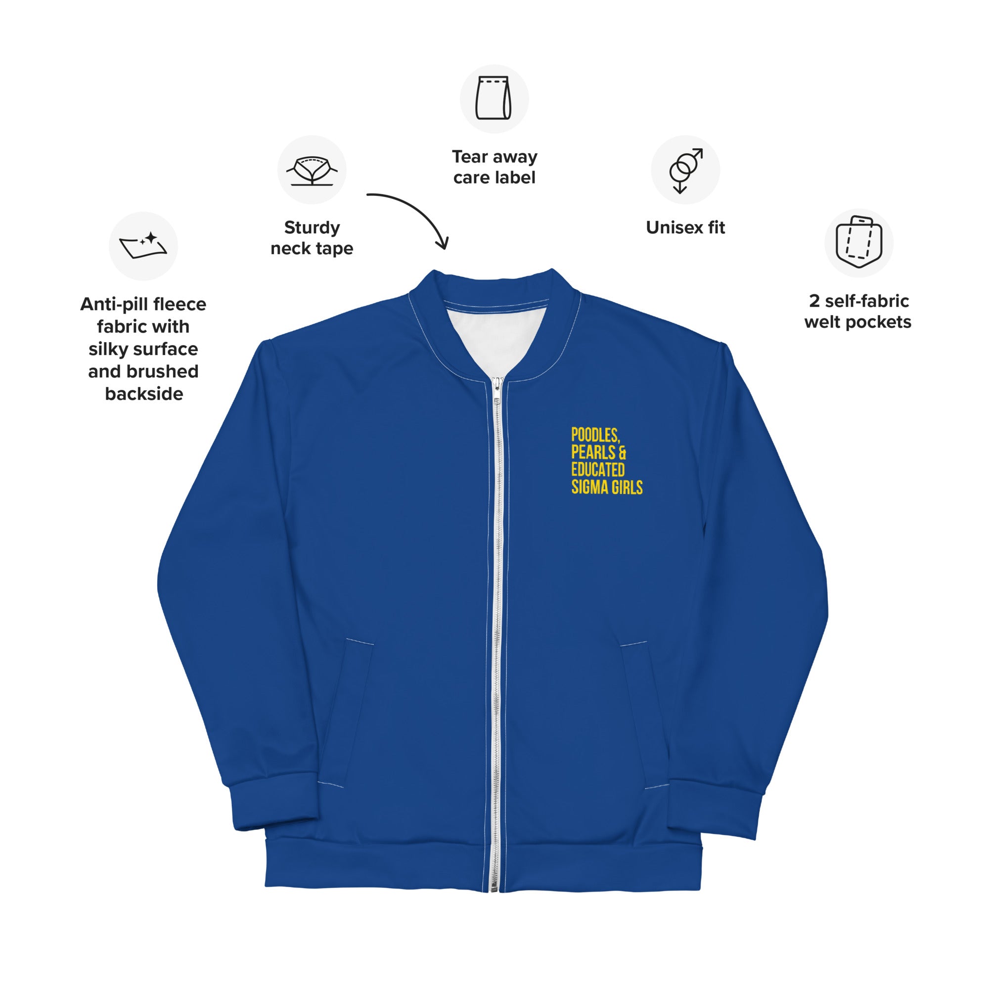 Poodles Pearls & Educated Sigma Girls Bomber Jacket - Blue