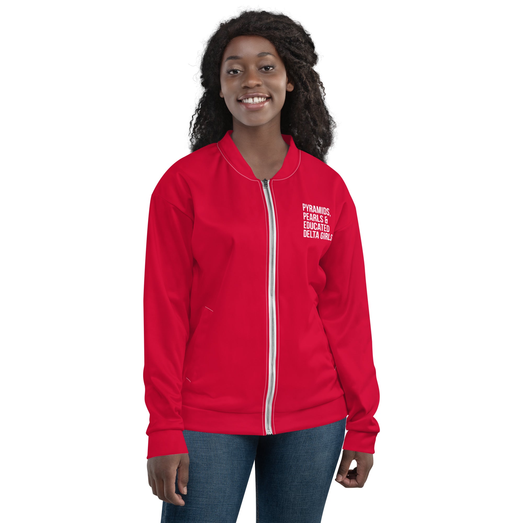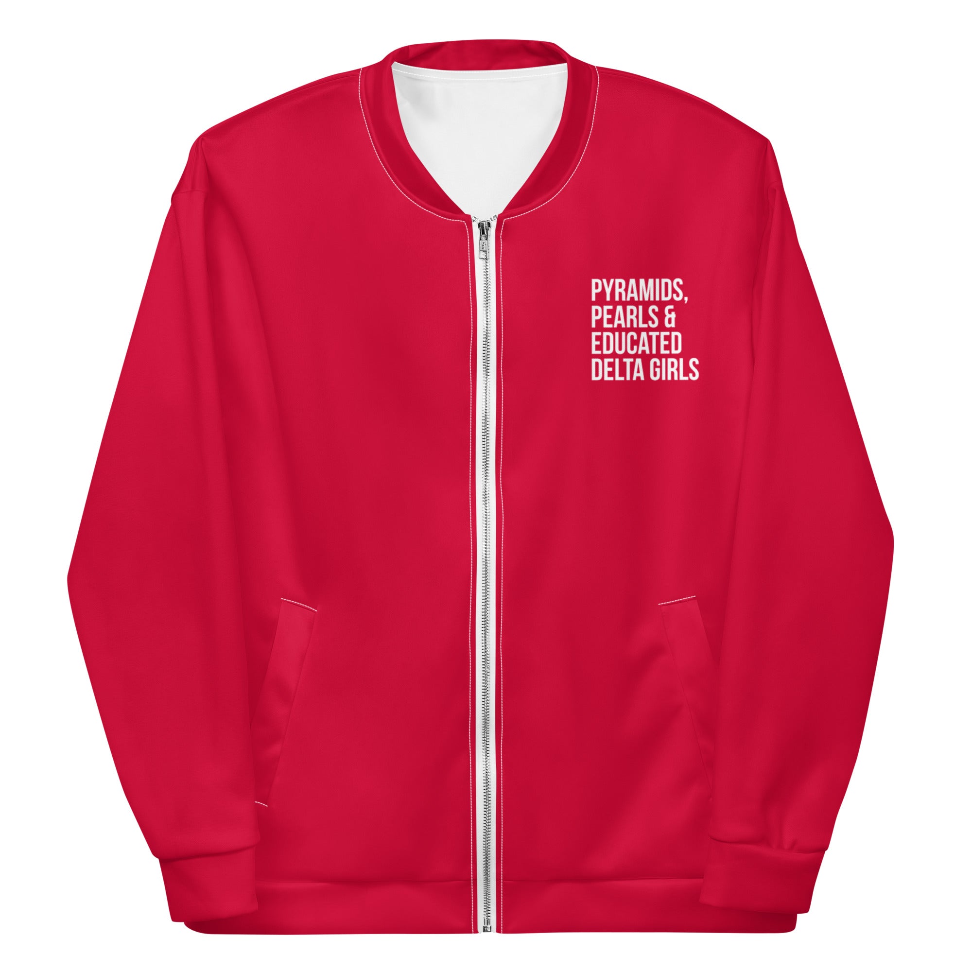 Pyramids Pearls & Educated Delta Girls Bomber Jacket - Crimson & White