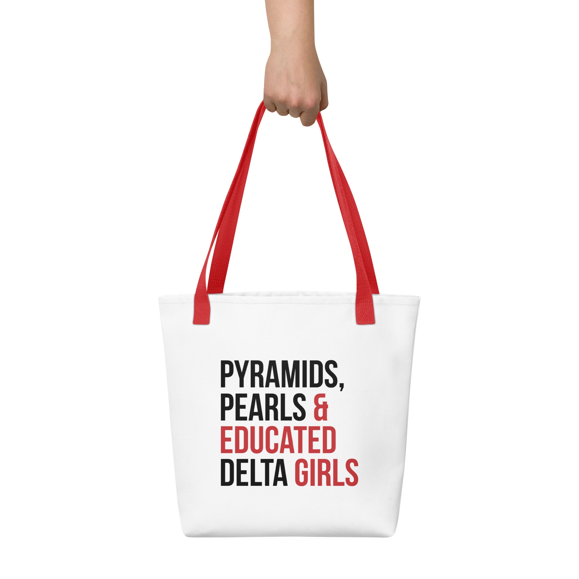 Pyramids Pearls & Educated Delta Girls Tote - White Multi Red
